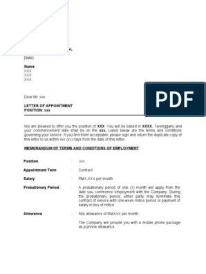 Appointment Letter Sample Malaysia. Web sample for appointment, confirmation letter to a new employee. I will really appreciate if you will be.